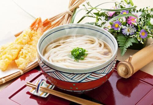 水洗いしたうどんをお湯で温めて丼に移します。熱いかけ汁をかけてお好みの具(天ぷら、ねぎ、かまぼこ等)をのせて召し上がってください。