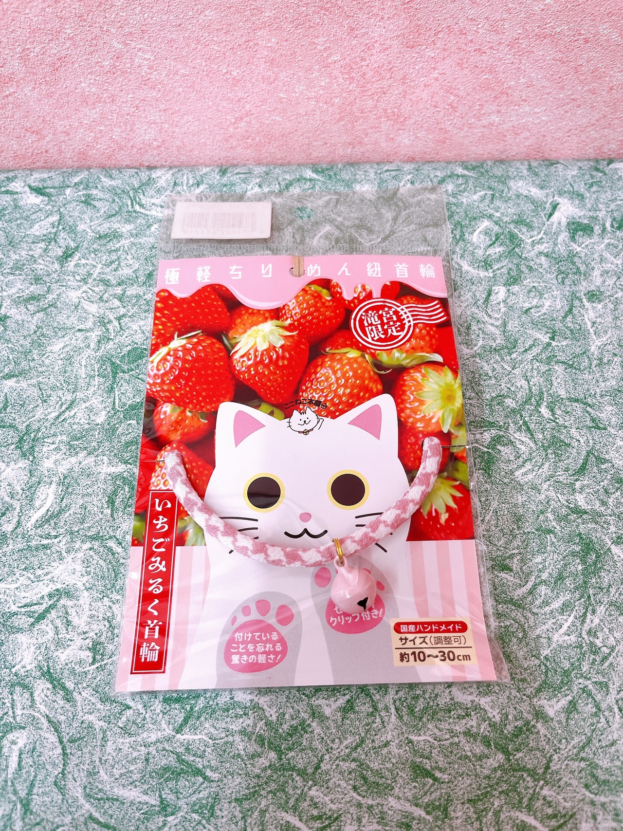 道の駅滝宮限定。いちごみるくをイメージした猫首輪。