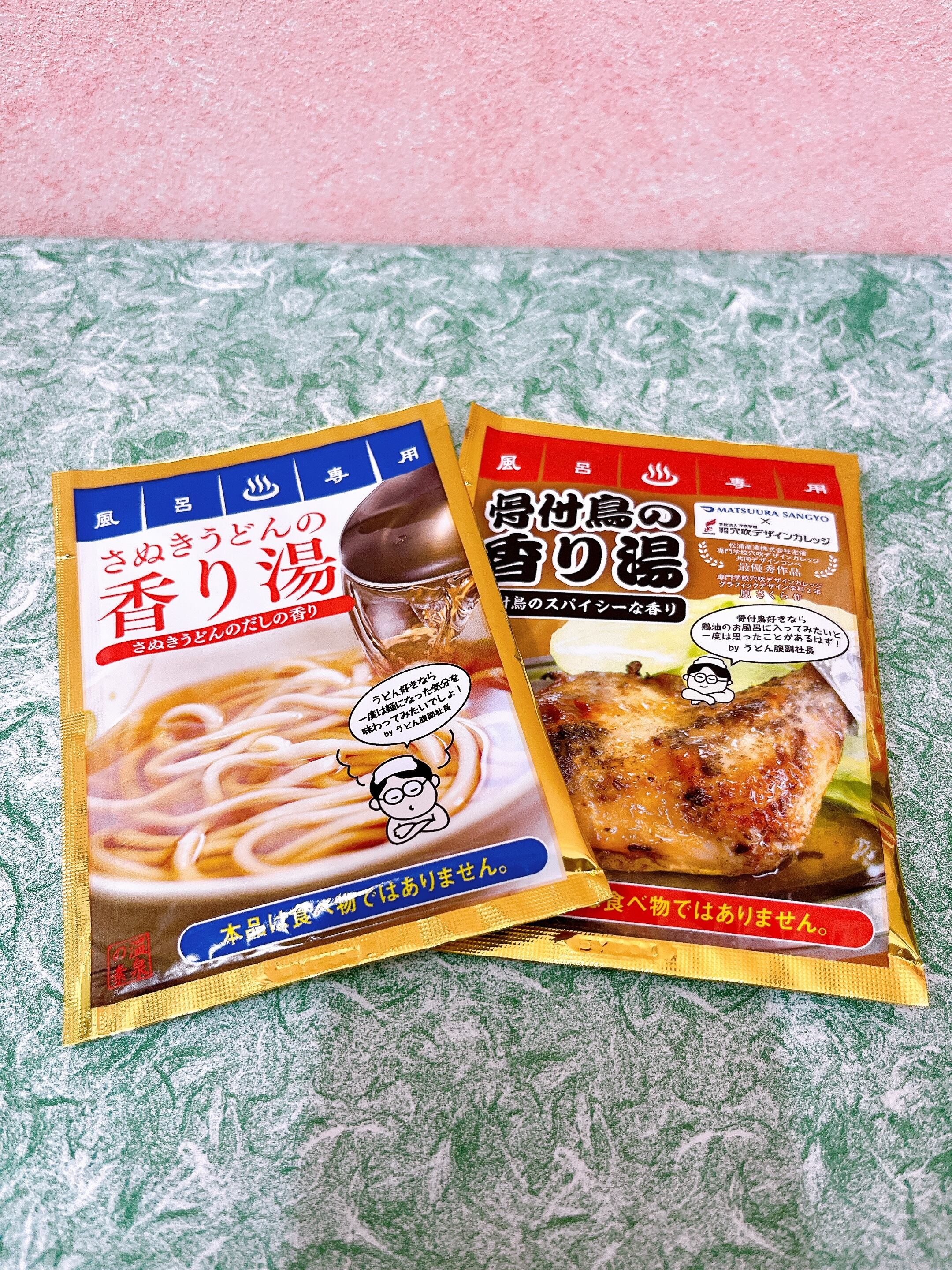 お風呂に投入していただくと、さぬきうどんの出汁の香りと色を再現したようなお湯になります。「うどん好きなら一度はうどんの出汁を泳いでみたい!」そんな皆様の願いを叶えるべく誕生した、うどん好きのための入浴剤です。
